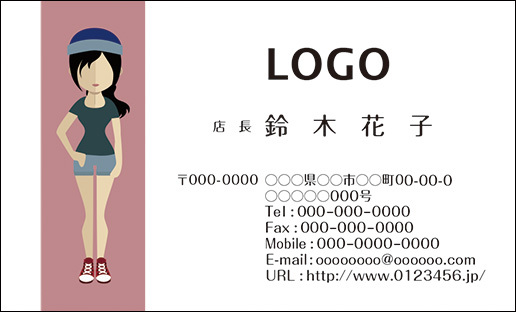 カラーデザイン名刺 ショップカード 印刷 作成【100枚】ロゴ入れ可 アバター 人 女性 avatar007