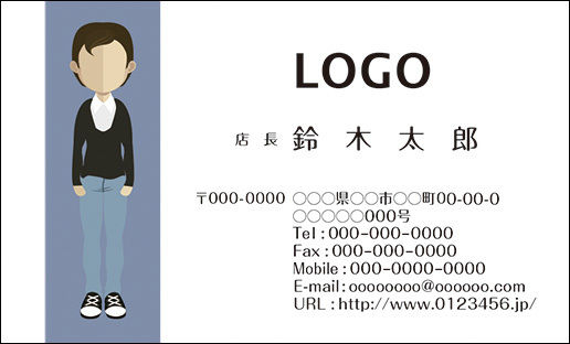 カラーデザイン名刺 ショップカード 印刷 作成【100枚】ロゴ入れ可 アバター 人 男性 avatar013
