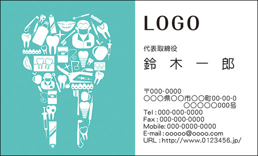 カラーデザイン名刺 ショップカード 印刷 作成【100枚】ロゴ入れ可 歯 歯科医 dental002
