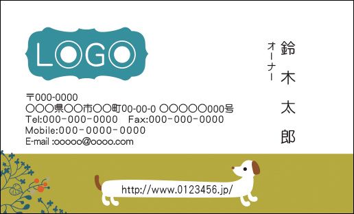 カラーデザイン名刺 ショップカード 印刷 作成 100枚 ロゴ入れ可 ナチュラル 動物 個性的 dog001