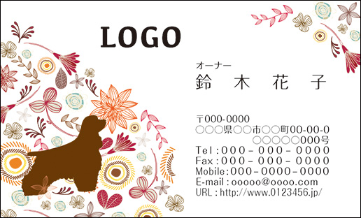 カラーデザイン名刺 ショップカード 印刷 作成【100枚】ロゴ入れ可 犬 動物 ペット dog008
