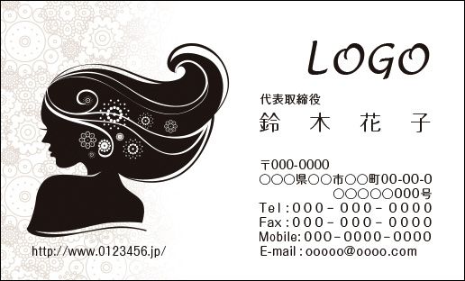 カラーデザイン名刺 ショップカード 印刷 作成 100枚 ロゴ入れ可 女性 ヘアサロン ヘア fashion001