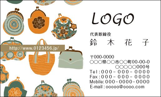 カラーデザイン名刺 ショップカード 印刷 作成 100枚 ロゴ入れ可 女性 バッグ 財布 アパレル fashion007