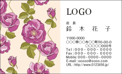 カラーデザイン名刺 印刷 作成 100枚 ロゴ入れ可 花 エレガント シック flower025