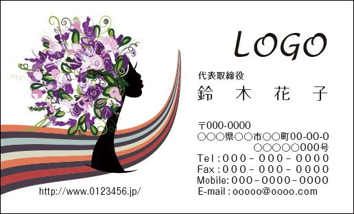 カラーデザイン名刺 ショップカード 印刷 作成 100枚 ロゴ入れ可 女性 ヘアサロン hairsalon001