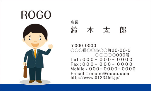 カラーデザイン名刺 ショップカード 印刷 作成【100枚】ロゴ入れ可 サラリーマン スーツ mascot006