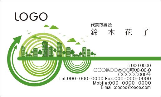カラーデザイン名刺 ショップカード 印刷 作成 100枚 ロゴ入れ可 イラスト グリーン エコ リサイクル recycle001