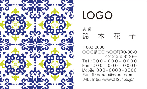 カラーデザイン名刺 ショップカード 印刷 作成【100枚】ロゴ入れ可 ブルー レトロ retro016