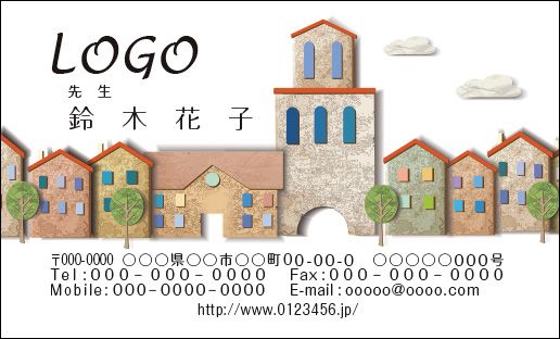 カラーデザイン名刺 ショップカード 印刷 作成 100枚 ロゴ入れ可 学校 先生 街 school001