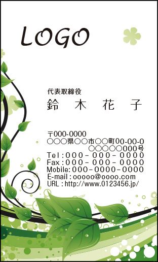 カラーデザイン名刺 ショップカード 印刷 作成 100枚 ロゴ入れ可 ナチュラル グリーン season004