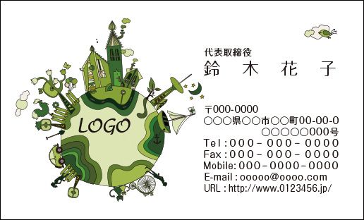 カラーデザイン名刺 ショップカード 印刷 作成 100枚 ロゴ入れ可 イラスト グリーン エコ ワールド 旅行 world006