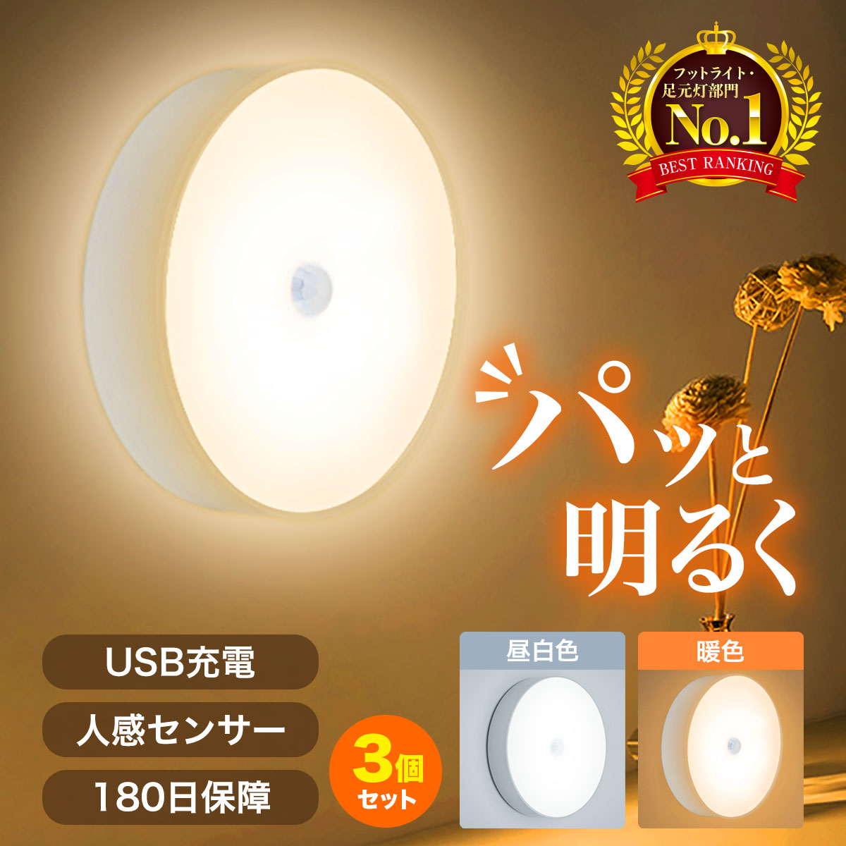 センサーライト 人感センサーライト 室内 LED 人感 USB 充電式 足元灯 玄関 屋内 センサー照明 フットライト 3個セット
