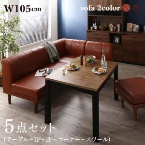 ダイニングセット 5点セット アンティルド 5点セット(テーブル+2人掛けソファ1脚+1人掛けソファ1脚+コーナーソファ1脚+スツール1脚) W105