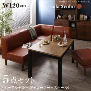 5点セット(テーブル+2人掛けソファ1脚+1人掛けソファ1脚+コーナーソファ1脚+スツール1脚) W120