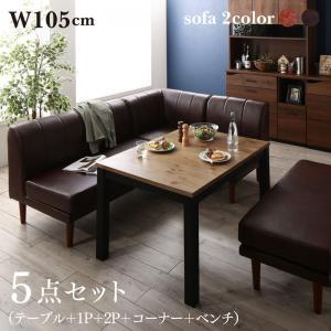 ダイニングセット 5点セット アンティルド 5点セット(テーブル+2人掛けソファ1脚+1人掛けソファ1脚+コーナーソファ1脚+ベンチ1脚) W105