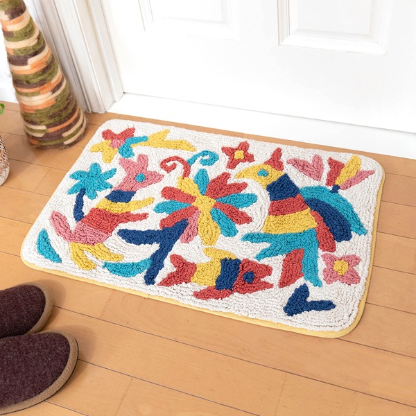 動植物がカラフルなメキシコの「オトミ刺繍」をイメージしたマット