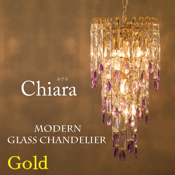 【LED対応可】モダンガラス シャンデリア Chiara キアラ(5灯) 家具 インテリア 照明 電球 シーリング 天井照明 ペンダント
