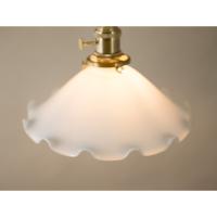 白いミルクガラスを花びらのように広げたシェードが、空間にそっと可憐さを添えるペンダントランプ。