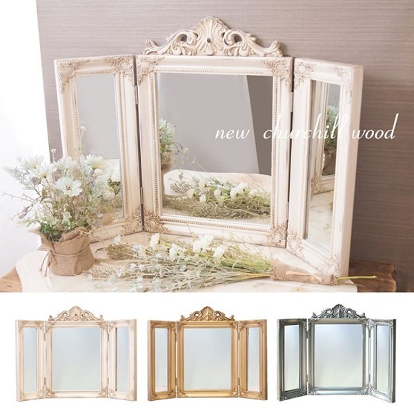 Newチャーチルウッド【三面鏡】 家具 インテリア ミラー 卓上ミラー ドレッサー 三面鏡 折りたたみ
