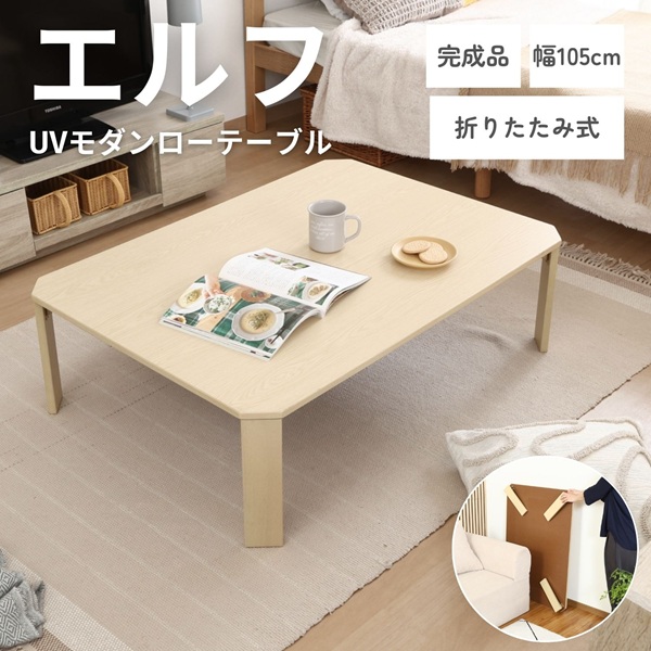 UVモダンローテーブル エルフ ホワイトオーク 105x75 インテリア テーブル 座卓 ちゃぶ台 折りたたみ