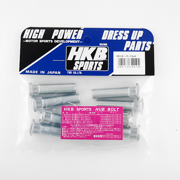 メール便可 HKB 東栄産業 ロングハブボルト 10mm ニッサン 4穴 P1.25 13 8本入 HK34