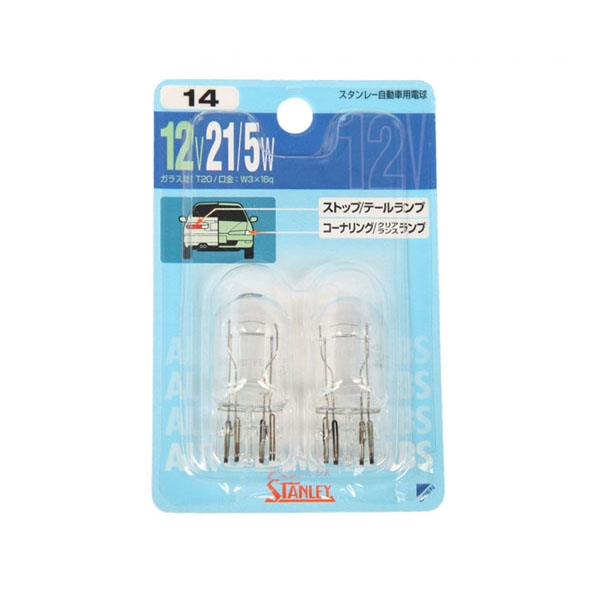 W3×16q T20 ストップランプ、テールランプ、コーナリングランプ、クリアランスランプ ブリスター電球 NO.14 スタンレー