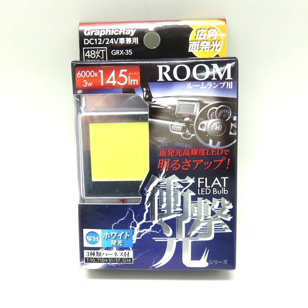 アークス 高輝度発光LEDルームバルブ 48LED 面発光ルームランプ 6000k 145lm 3W ホワイト DC12/DC24V車兼用 ルーム球 室内灯 GRX-35