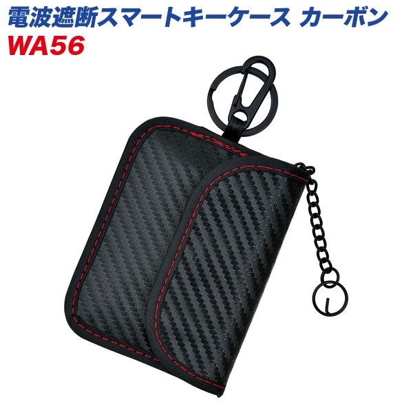 セイワ 電波遮断スマートキーケース カーボン リレーアタック対策 防犯対策用 落下防止チェーン付 コンパクトサイズ WA-56