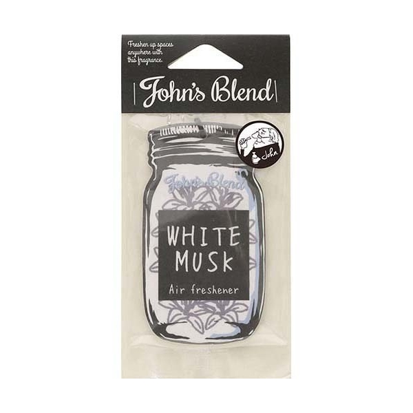 ジョンズブレンド エアーフレッシュナー ホワイトムスク(John’s Blend エアフレッシュナー Air freshener WHITE MUSK)/ルームフレグランス(芳香剤)/ブランド:ジョンズブレンド(John’s Blend)/【発売元、製造元、輸入元又は販売元】ノルコーポレーション/【ジョンズブレンド エアーフレッシュナー ホワイトムスクの商品詳細】ペーパー吊り下げタイプのエアフレッシュナーです。コーヒーショップの様なオシャレなパッケージデザインで、車や部屋に飾って心地良い香りと共にインテリアのアクセントとしてもお楽しみいただけます。