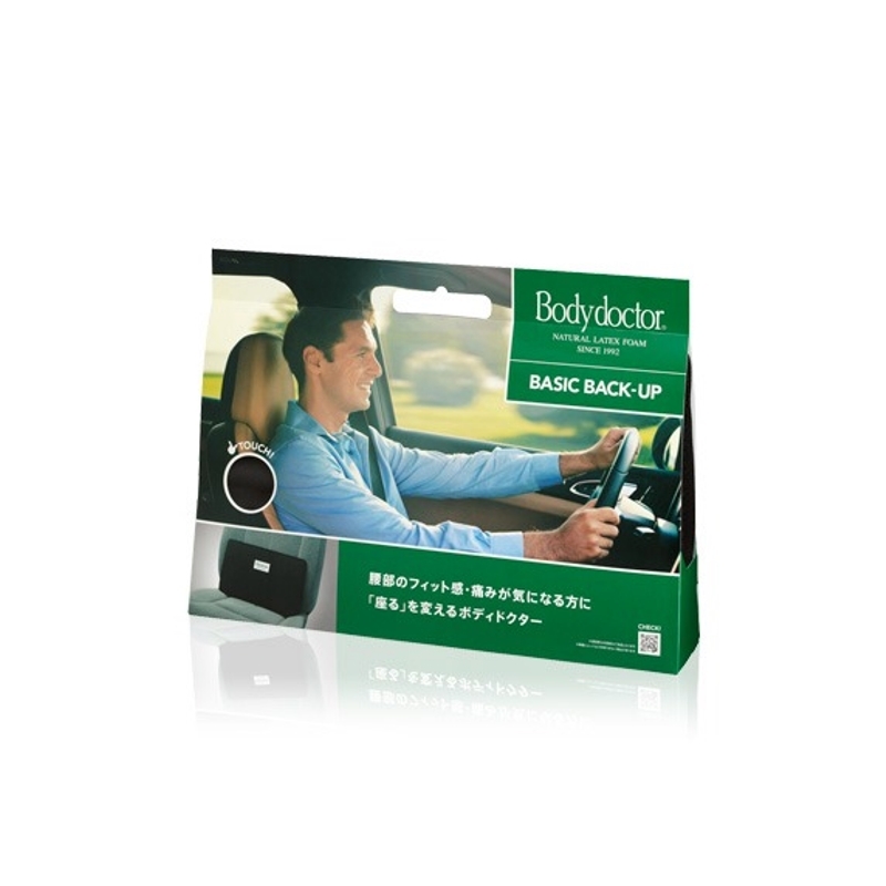 「Bodydoctor」シリーズのソフト99オリジナルモデルのランバーサポートクッション。クッション本体は柔軟性と体圧分散性に優れた天然ラテックス素材で、腰とシートの隙間を埋め、自然で心地よいクッション性がドライブをサポートします。