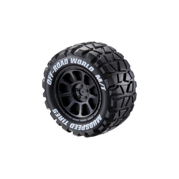 ・見た目のインパクトと存在感を際立たせる無骨なオフロード用タイヤデザインです。
