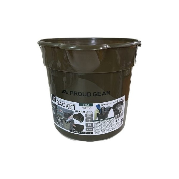 マルチバケツ11L アウトドア メモリ付き 注ぎ口 洗車 カー用品 倉庫 家庭 オフィス カーキ ロゴ付き プラウド PGR-410