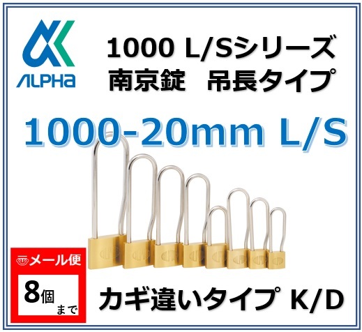 ALPHA アルファ南京錠 1000-20L/S カギ違い 吊長タイプ 1000シリーズ 鍵 別鍵 別番 防犯 セキュリティ【メール便:8個まで】