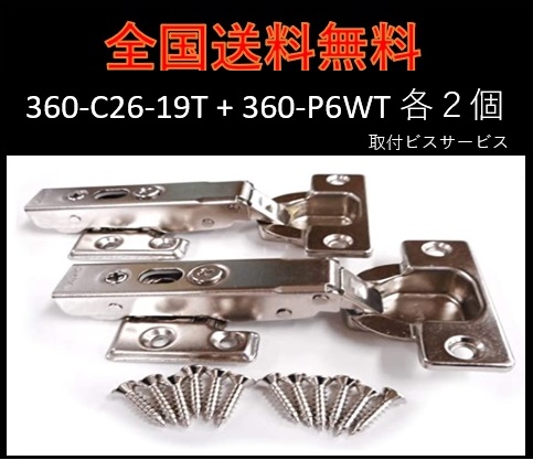 全国送料無料 スライド丁番 360-C26-19T P6WT 2個セット 全カブセ キャッチ付 35パイ LAMP スガツネ 座金付 取付ビス付 オリンピア