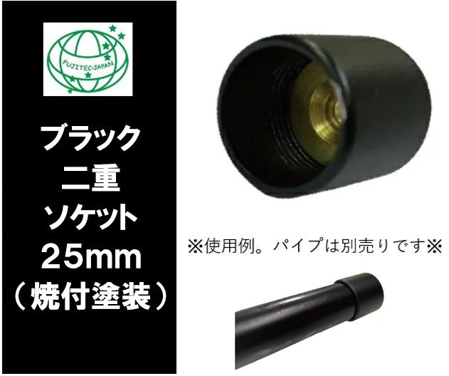 ブラック 二重ソケット 25mm ブラックパイプ 黒 ダブル 壁付 真鍮座金 ブラックパイプ 25ミリ ダイカスト 焼付塗装
