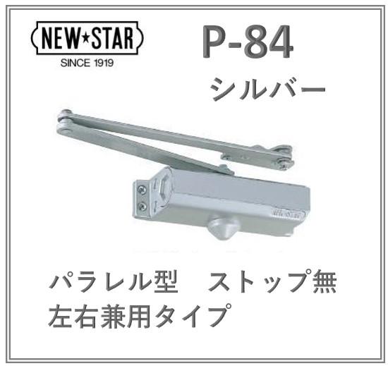 ニュースター ドアクローザー P-84 シルバー ストップ無 日本ドアチェック NEW STAR P84 交換 左右勝手兼用 鋼製ドア用 スチールドア用