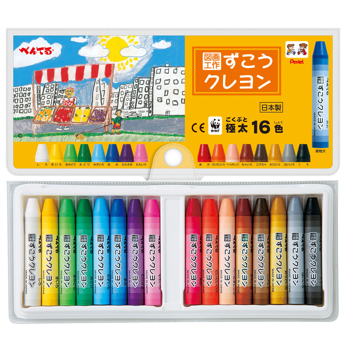 [ メール便可 ] ぺんてる ずこうクレヨン 極太 16色セット ソフトケース PTCGW2-16 Pentel 【 入学 入園 新学期 入学祝い 入園祝い 小学校 幼稚園 保育園 】