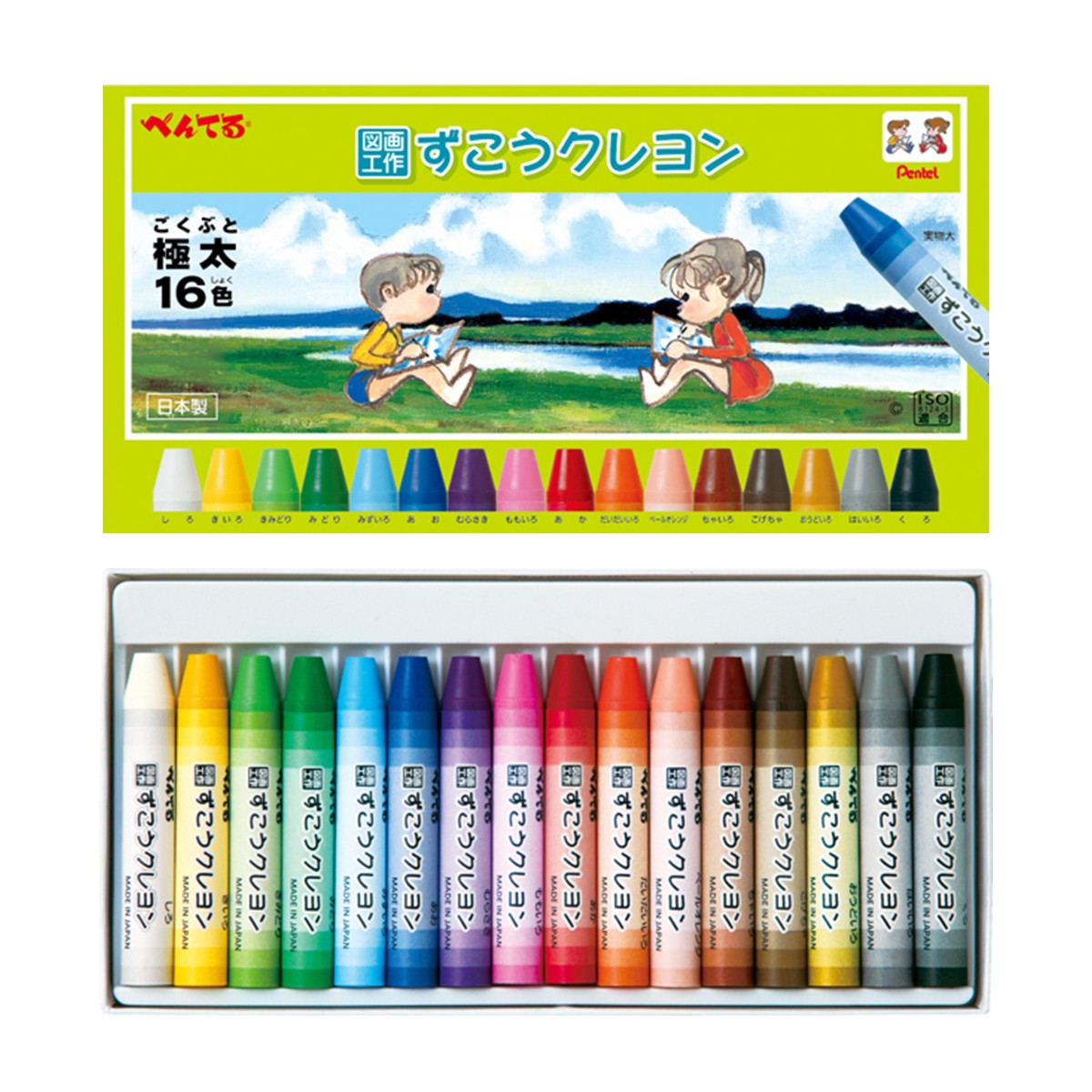 [ メール便可 ] ぺんてる ずこうくれよん 極太 紙箱 16色セット PTCG2-16 Pentel 【 図工 クレヨン 箱入り 小学校 小学生 幼稚園 保育園 入学 入園 】