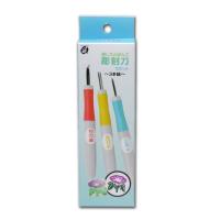 印刀(曲)4.5mm、丸刀(小)3mm、三角刀(小)1.5mm、二層鋼製、安全キャップ付