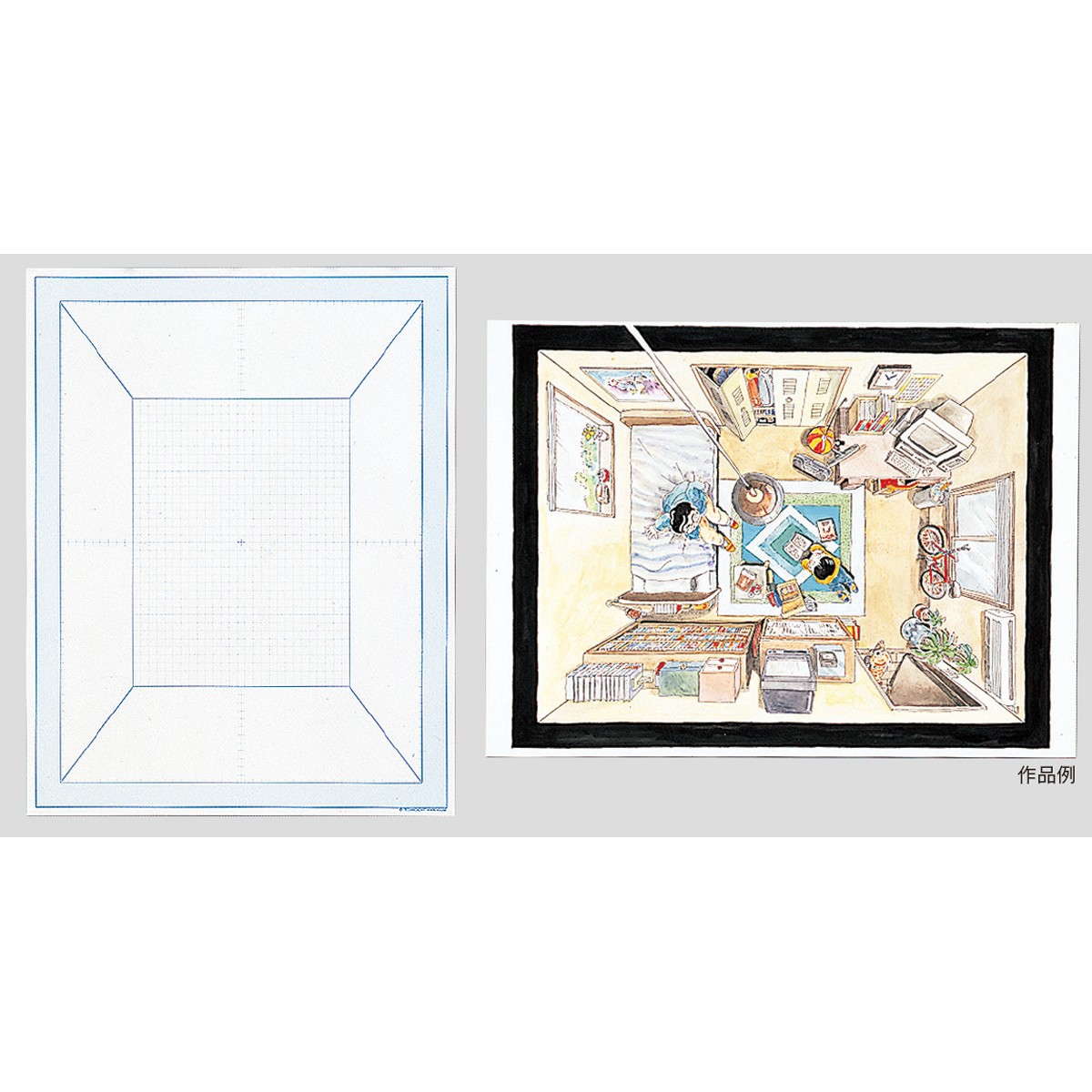 上から覗いた部屋の絵を一点透視図法で描くためのケント紙ボードです。