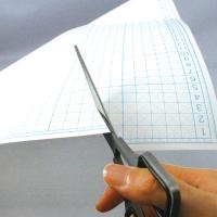 ボール紙製に比べて軟らかく、1cm方眼に斜めの線が入り、はさみで切ったり、線に沿って折ったりが楽にできます。