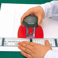 左手で定規をしっかり固定し、グリップを押しながら手前に引いて切ります。