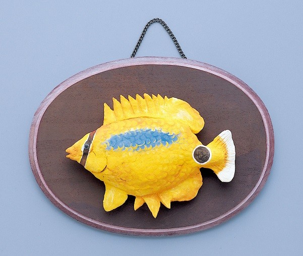 プラークの上に粘土で制作した魚のレリーフを貼り付けてインテリアに仕上げるセットです。