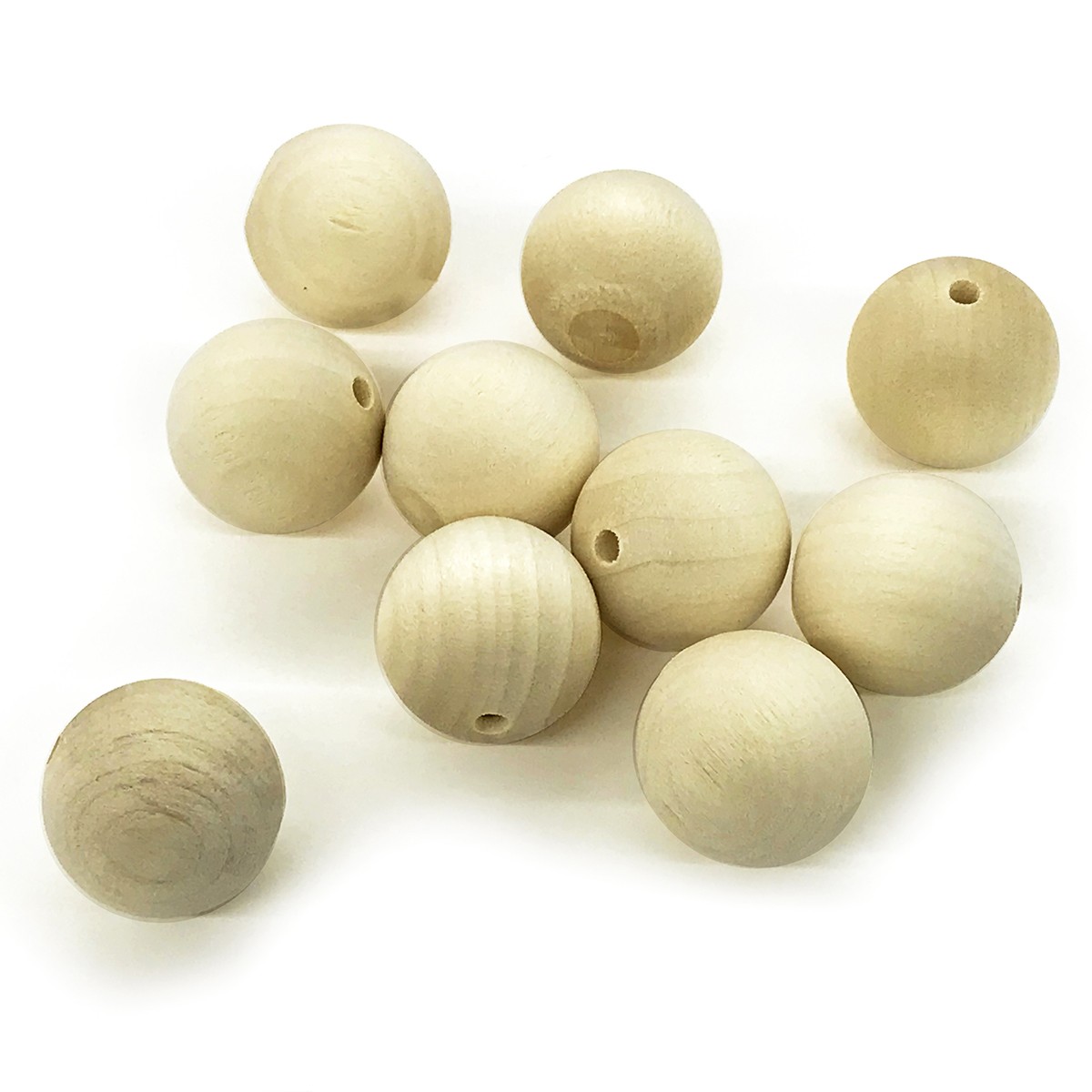木球 中 穴あき 10個組 直径約21mm 【 木材 木製 パーツ 木 玉 ボール 球 部品 】