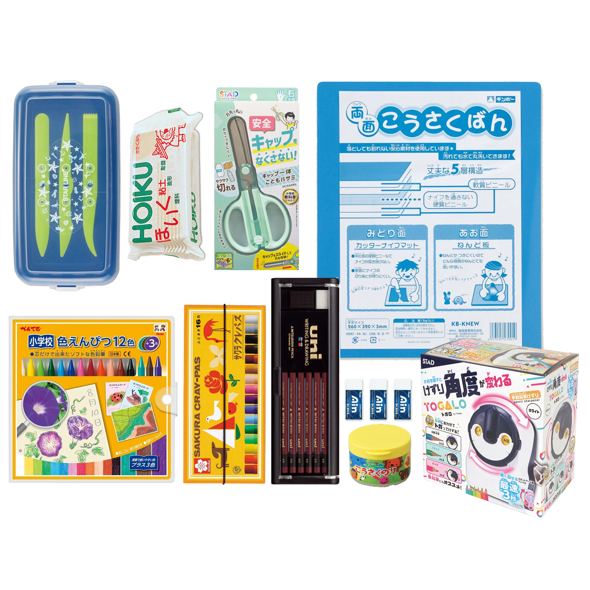 人気の粘土ケースセットを含めた、新入学準備に必要な文房具10点をセットにしました。