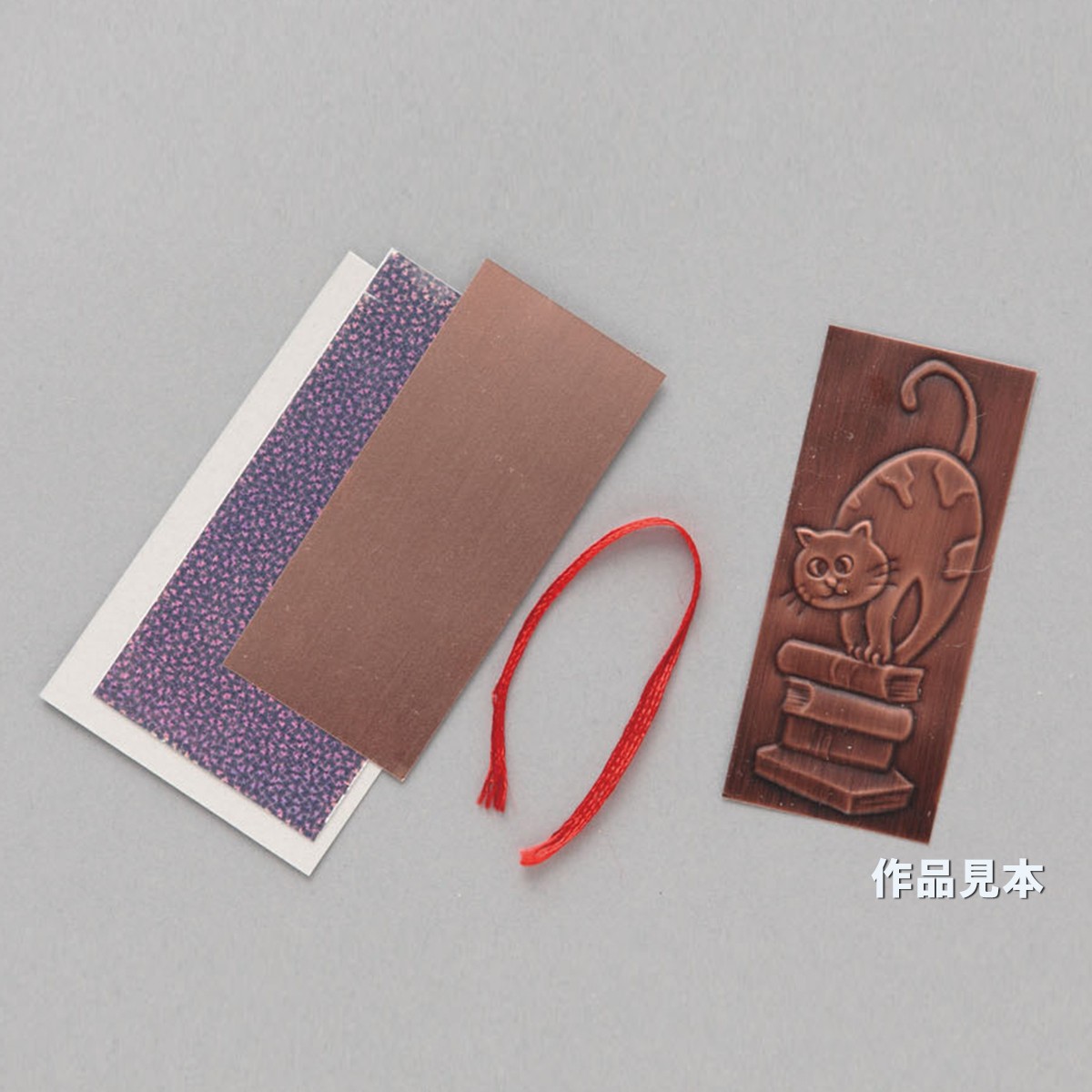 セット内容:レリーフ銅板(40×90mm)1枚、裏用ラミネートシール1枚、しおり用ひも1本