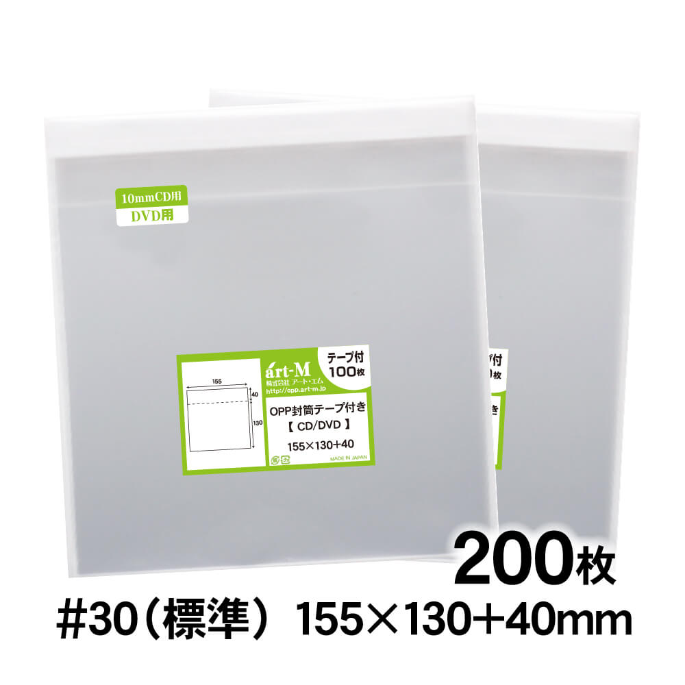 OPP袋 10mmCDケース用 テープ付 200枚 30ミクロン厚(標準) 155×130+40mm 透明袋 国産