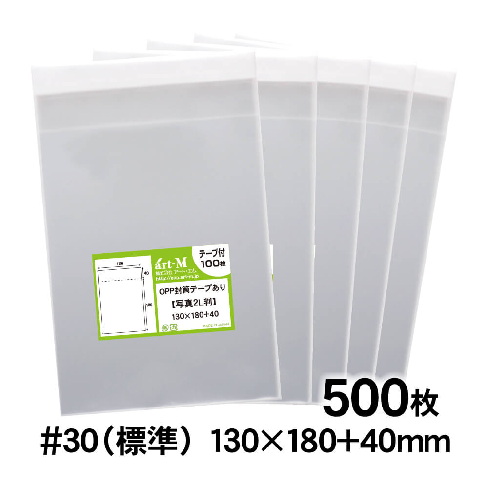 OPP袋 写真2L判用 テープ付 500枚 30ミクロン厚(標準) 130×180+40mm 透明袋 国産