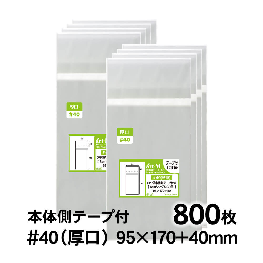OPP袋 8cmシングルCD用 本体側テープ付 800枚 40ミクロン厚(厚口) 95×170+40mm 透明袋 国産