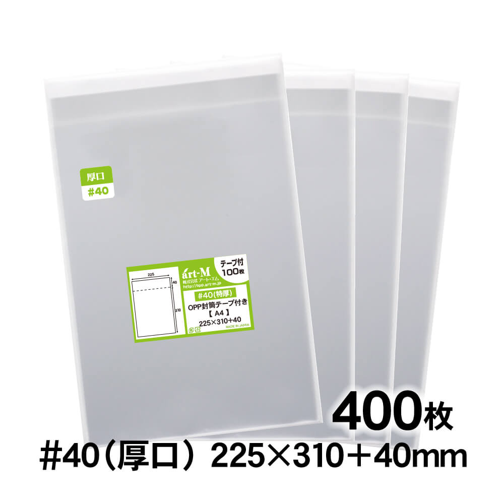 OPP袋 A4 テープ付 400枚 40ミクロン厚(厚口) 225×310+40mm 透明袋 国産